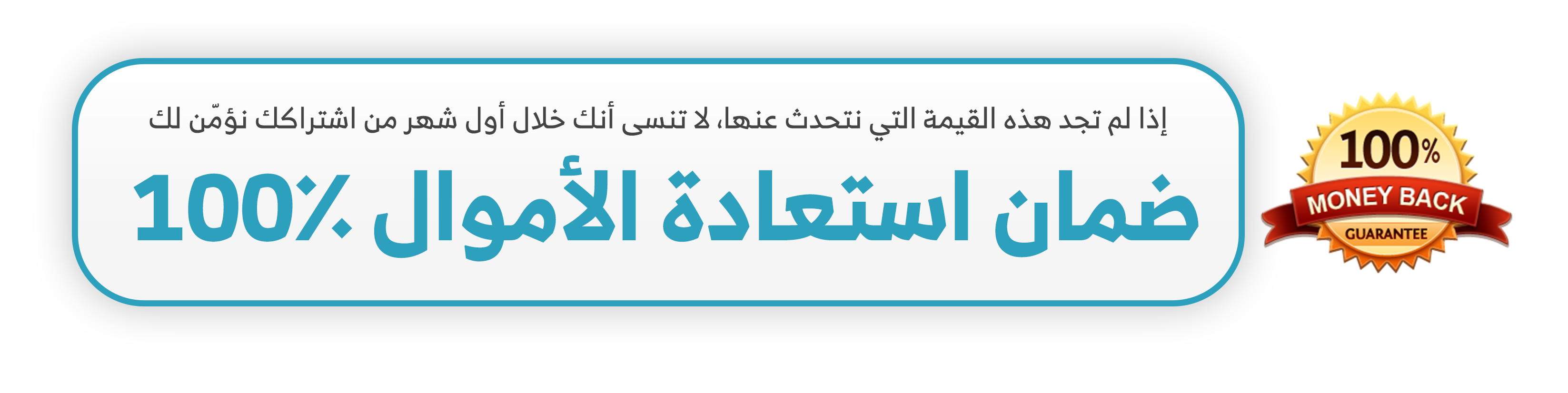 جرب البرنامج على مسؤوليتنا لـ 30 يوم ! في حالة ما عجبك لأي سبب ! أرسل ايميل للدعم الفني و راح نرجع لك كل المبلغ من دون أي أسئلة !! و تقدر تحتفظ بكل الهدايا اللي جاتك مع الكورس مجانًا لك كتقدير مننا لوقتك.